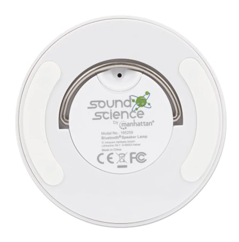 Manhattan Sound Science Bluetooth Speaker (Clearance Pricing), 5 hour Playback time, Range 10m, microSD card reader (32GB), Aux 3.5mm connector, Output 3W, USB-A charging cable included, 1200mAH battery, Bluetooth v5, Built-in hanger, White, 3 Year Warran