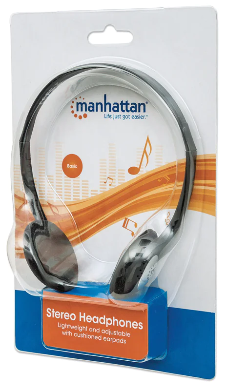 Manhattan Stereo On-Ear Headphones (3.5mm), Adjustable Split Headband, Foam Earpads, Speaker 80W max, Standard 3.5mm stereo jack/plug for audio output, cable 2.2m, Black, Three Year Warranty, Blister | ||||