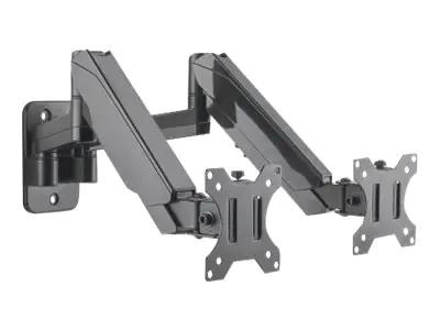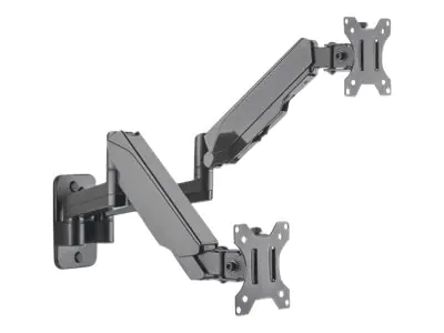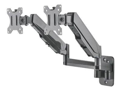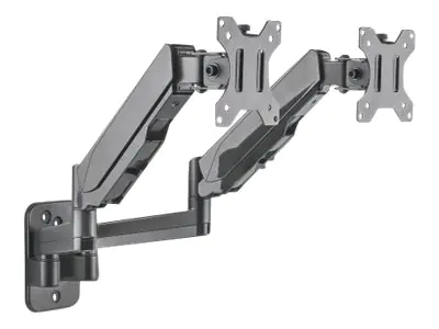 Manhattan TV & Monitor Mount, Wall, Full Motion (Gas Spring), 2 screens, Screen Sizes: 17-32", Black, Dual Screen, VESA 75x75 to 100x100mm, Max 8kg (each), Tilt & Swivel with 3 Pivots, Lifetime Warranty - Klammer - für 2 LCD-Displays - Kunststoff, Alumini