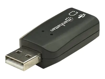 Produktbeschreibung | Manhattan USB-A Sound Adapter, USB-A to 3.5mm Mic-in and Audio-Out ports, 480 Mbps (USB 2.0), supports 3D and virtual 5.1 surround sound, Hi-Speed USB, Black, Three Year Warranty, Blister - Soundkarte | |||