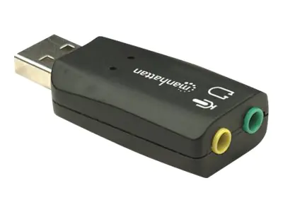 Manhattan USB-A Sound Adapter, USB-A to 3.5mm Mic-in and Audio-Out ports, 480 Mbps (USB 2.0), supports 3D and virtual 5.1 surround sound, Hi-Speed USB, Black, Three Year Warranty, Blister - Soundkarte - Stereo - USB 2.0
