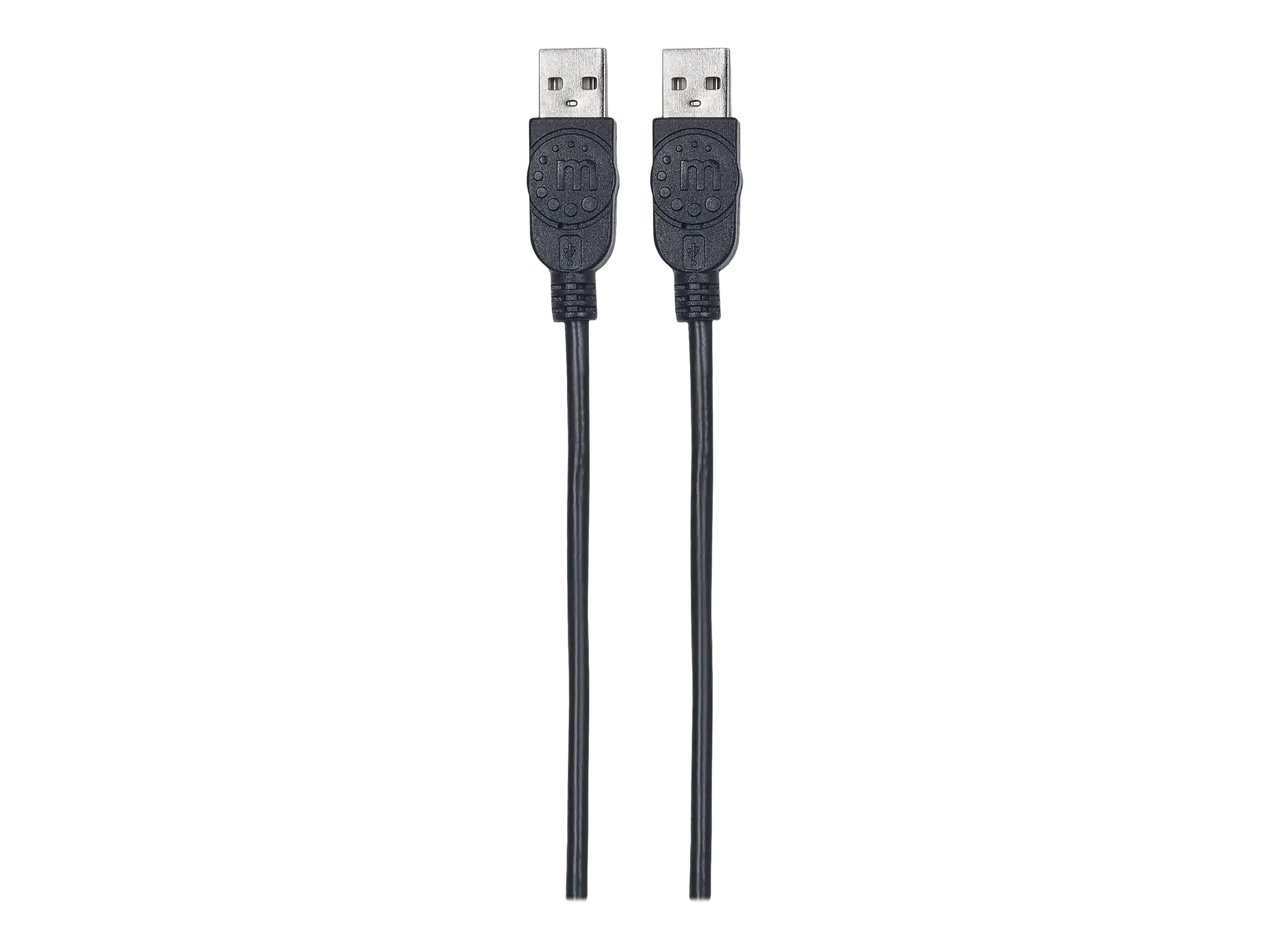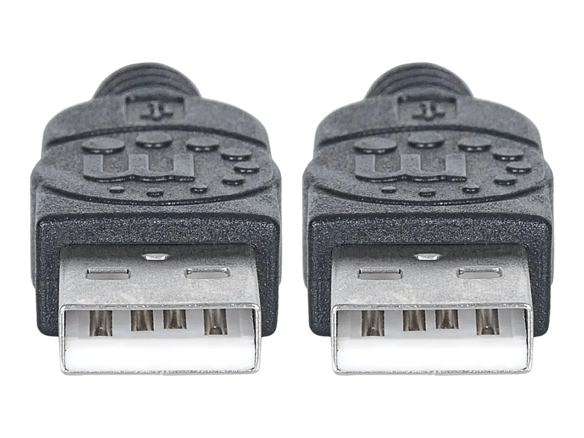 Manhattan USB-A to USB-A Cable, 1m, Male to Male, 480 Mbps (USB 2.0), Hi-Speed USB, Black, Lifetime Warranty, Polybag - USB-Kabel - USB (M) zu USB (M) - USB 2.0 - 1 m - geformt - Schwarz