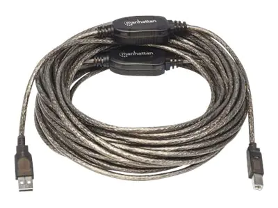 Manhattan USB-A to USB-B Cable, 15m, Male to Male, Active, Black, 480 Mbps (USB 2.0), Built-in Chipset With Amplification, Hi-Speed USB, Three Year Warranty, Polybag - USB-Kabel - USB (M) zu USB Typ B (M) - USB 2.0 - 5 V - 1 A - 15 m - aktiv - Schwarz