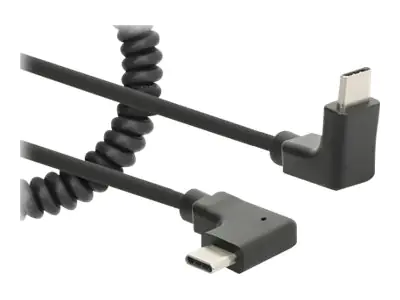 Manhattan - USB-Kabel - USB-C (M) gewinkelt zu USB-C (M) gewinkelt - USB 3.1 - 3 A - 1 m - gewickelt, einziehbar, USB Power Delivery (60W) - Schwarz