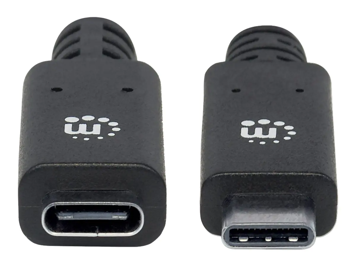 Manhattan USB-C to USB-C Extension Cable, 50cm, Male to Female, 10 Gbps (USB 3.2 Gen2 aka USB 3.1), 5A (super fast charging), SuperSpeed+ USB, Black, Lifetime Warranty, Polybag - USB-Verlängerungskabel - 24 pin USB-C (M) zu 24 pin USB-C (W) - USB 3.1 Gen