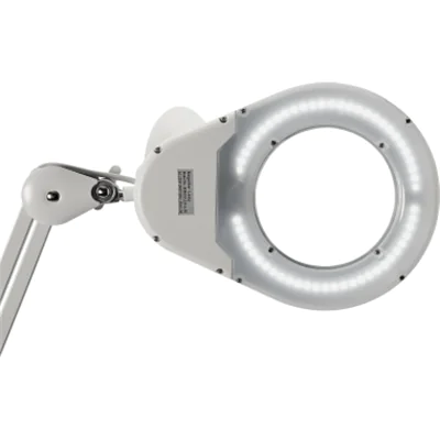 Ideal für präzise Arbeiten in Laboren, Werkstätten, technischen Büros, Arztpraxen. Oder im Privatbereich für Briefmarkensammler, Feinmechaniker oder als Leselupe. Ringförmig angeordnete LEDs für gleichmäßige Ausleuchtung. Inklusive Schutzklappe, die Sonneneinstrahlung und Verstauben verhindert. 3 Dioptrien-Echtglas-Linse, Ø 5" (12,7 cm), Linsenfläche 144 cm². Robuster Metallarm, dreh- und neigbar. Leuchtenkopf aus Kunststoff, dreh- und neigbar. Schalter am Leuchtenkopf für bequemes Ein- und Ausschalten. Klemmfuß aus kunststoffumspritztem Metall. Null Stromverbrauch in ausgeschaltetem Zustand. Technisches Sicherheitskonzept Made by MAUL. Dieses Produkt wird verkauft mit einer austauschbaren Lichtquelle der Energieeffizienzklasse E.