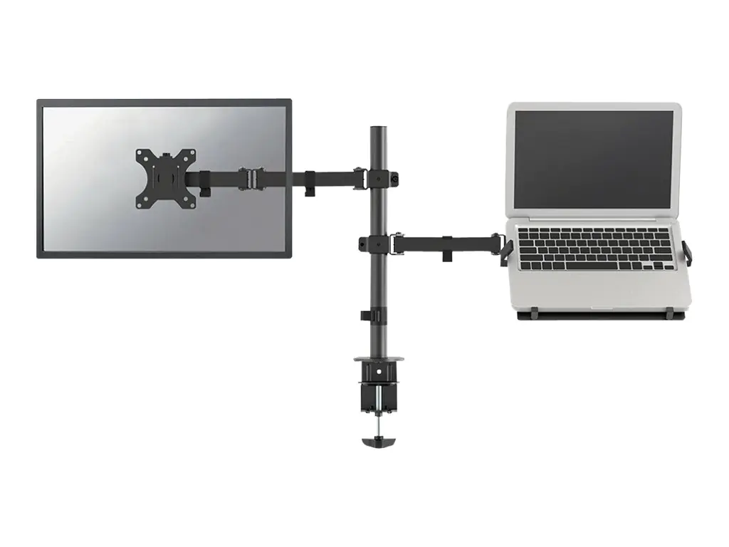 Die Neomounts by Newstar Tischhalterung, das Modell FPMA-D550NOTEBOOK, ist ein Neig-, Schwenk- und drehbare Tischhalterung für Flachbildschirme bis 32" und Notebooks bis 15,6". Diese Halterung ist eine gute Wahl für platzsparende Platzierung auf Schreibtischen mit einer Tischklemme oder grommet.