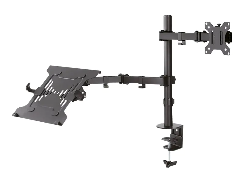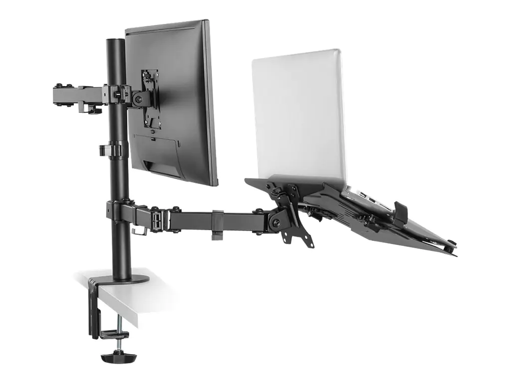 Neomounts by Newstar FPMA-D550NOTEBOOK hat drei Drehpunkten und eignet sich für Bildschirme bis 32" und Notebooks bis 15,6". Die Tragfähigkeit dieses Produkts ist für Bildschirme je 8 kg und Notebooks je 4,5 kg. Die Tischhalterung ist geeignet für Bildschirme mit VESA 75x75 oder 100x100 mm Lochmuster. Verschiedene andere Lochmuster können, unter Verwendung von Neomounts by Newstars VESA Adapterplatten, abgedeckt werden.