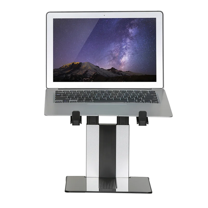 Durch das leichte, kompakte Design eignet sich der Ständer ideal, um ihn überall hin mitzunehmen. Die offene Konfiguration sorgt für eine gute Belüftung des Laptops und die rutschfesten Silikonkissen sowie die Sicherheits-Leisten sorgen für eine solide Positionierung.