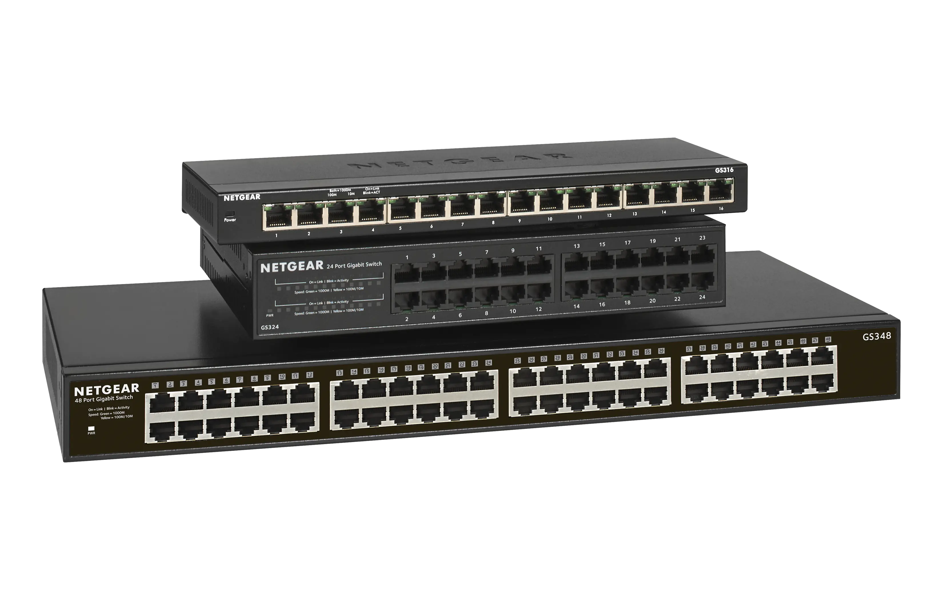 Die NETGEAR SOHO Ethernet Unmanaged Switches ermöglichen benutzerfreundliche und preisgünstige Netzwerkkonnektivität zu Hause sowie in kleinen bzw. Heimbüros. Sie sind benutzerfreundlich, zuverlässig und verfügen über ein Metallgehäuse. Die Power-over-Ethernet (PoE)-Unterstützung umfasst sowohl die Stromversorgung als auch die Datenübertragung über ein einziges CAT-5-Netzwerkkabel für Geräte wie IP-Sicherheitskameras, VoIP-Telefone, Wireless Access Points, etc. Mit diesen Plug-and-Play-Switches können Sie ohne Konfigurationsaufwand Ihre Geräte in Ihr Netzwerk einbinden.