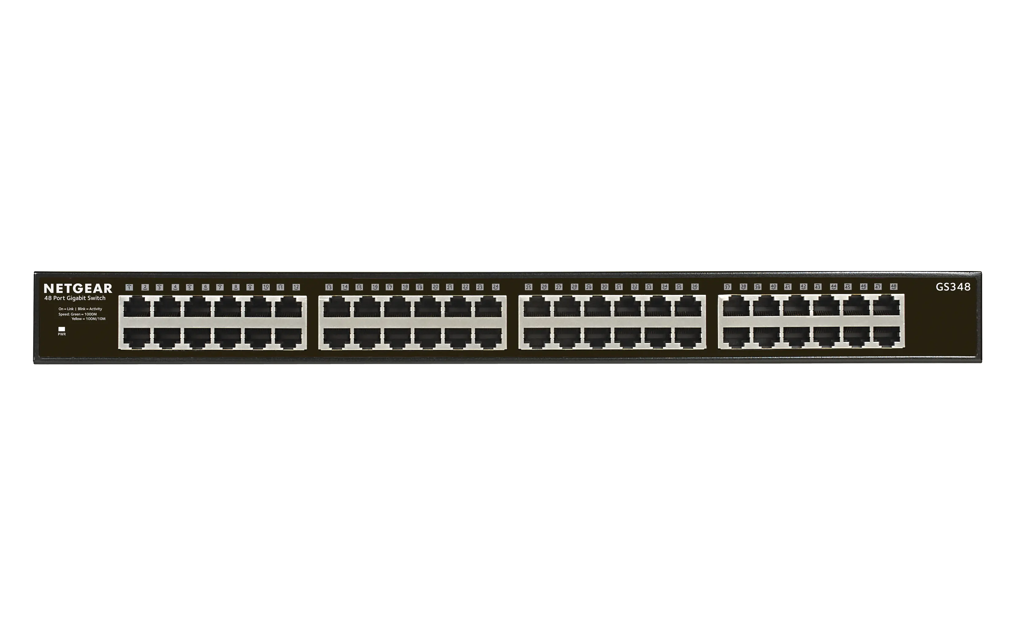 Produktbeschreibung | NETGEAR SOHO GS348 - Switch - 48 Anschlüsse - unmanaged - an Rack montierbar | |||