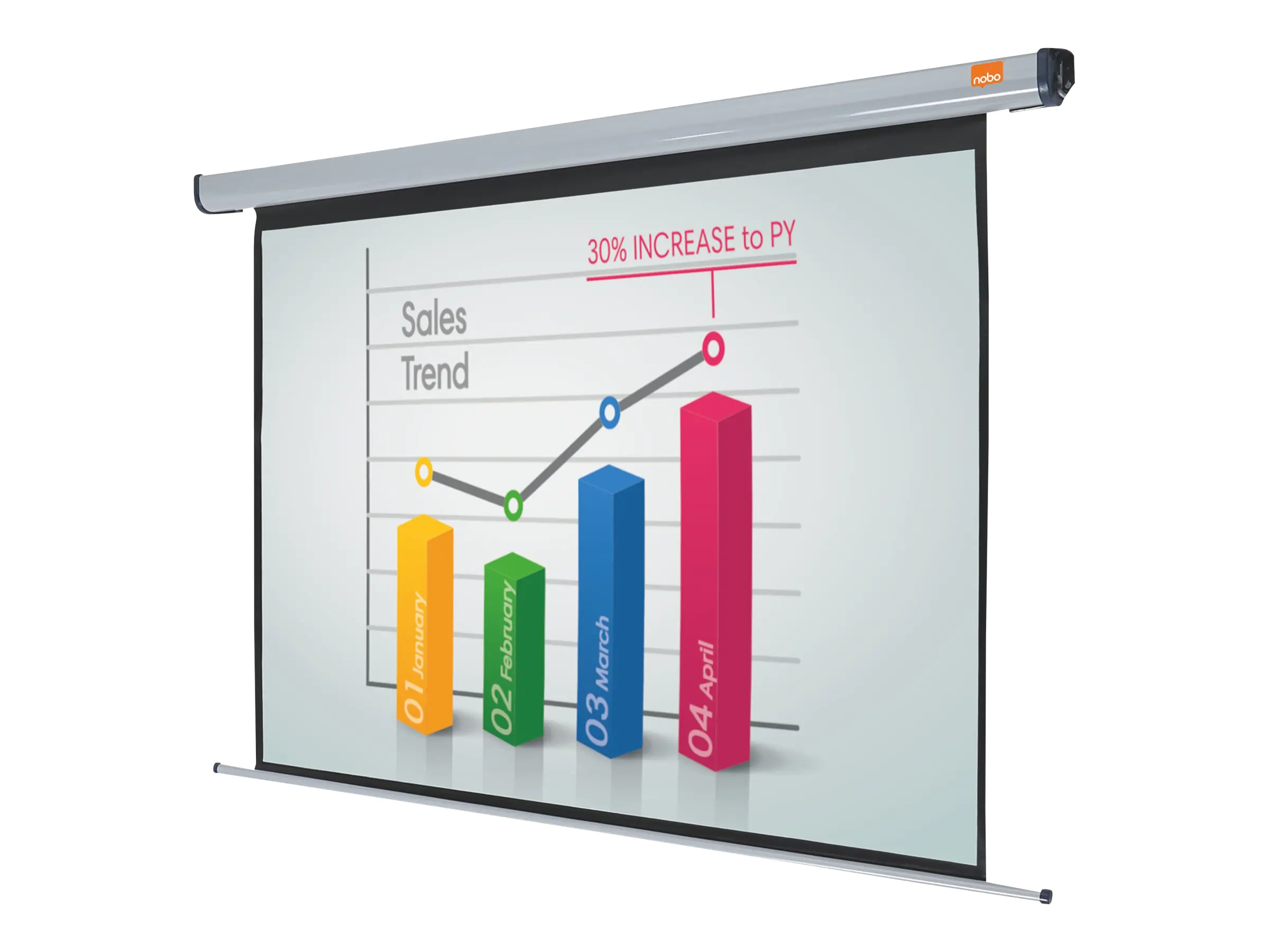 Verleiht Ihrer Präsentation ein professionelles Look & Feel. Perfekt geeignet für Besprechungszimmer, Vorstandsetagen und Konferenzräume. Einfach die Leinwand per Fernbedienung herunterlassen und fertig. Unkomplizierte Montage. Keine Fachkenntnisse für den Anschluss erforderlich. Einfach ans Stromnetz anschließen. Die mattweiße Oberfläche gewährleistet gestochen scharfe Bilder, die für alle Anwesenden klar erkennbar sind. Größe der Projektionsfläche: 144 × 108 cm.