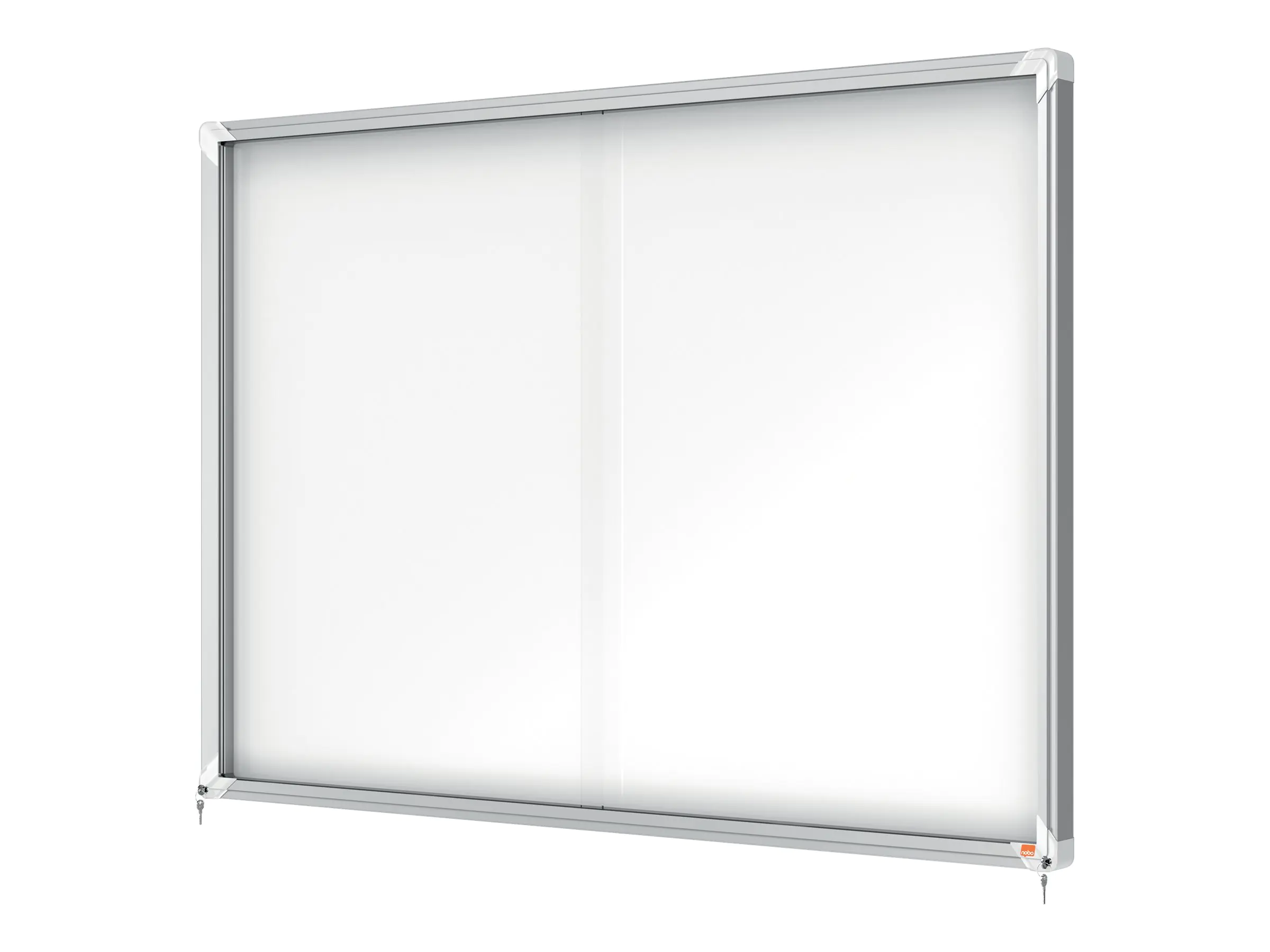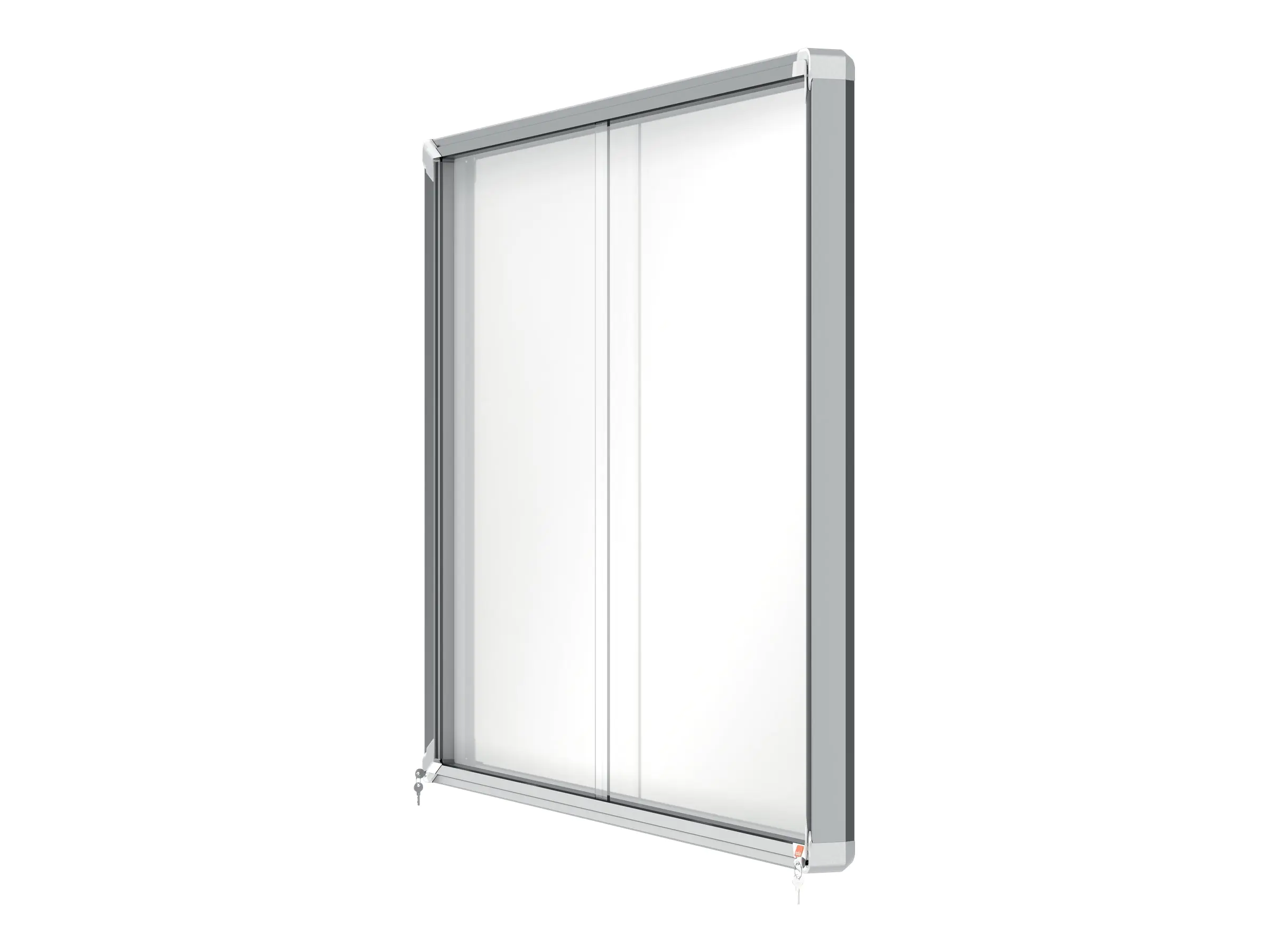 - Abschließbarer Schaukasten für den Innenbereich mit weißer, magnetischer, trocken abwischbarer Oberfläche, Schiebetür aus 4-mm-Sicherheitsglas und Sicherheitsschloss