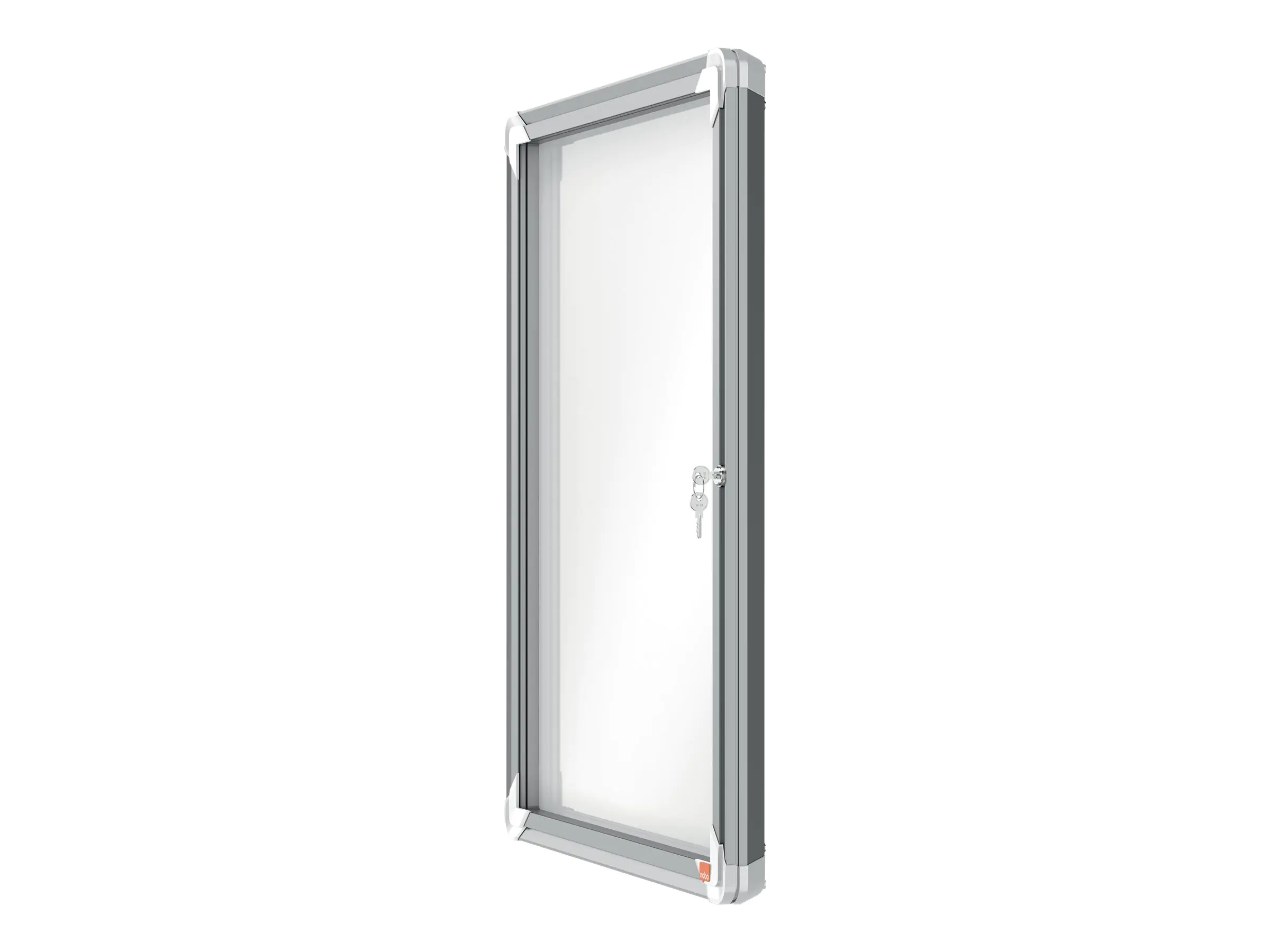 Wetterfester Schaukasten für den Außenbereich mit magnetischer Rückwand, Klapptür aus 4-mm-Sicherheitsglas und Sicherheitsschloss. Der Schaukasten wird von einem modernen Aluminiumrahmen eingefasst und mittels der mitgelieferten Wandbefestigung angebracht. Die weiße, magnetische Metalloberfläche ist trocken abwischbar und eignet sich bestens zum Anheften und Präsentieren von Dokumenten. Größe: 4 x A4.