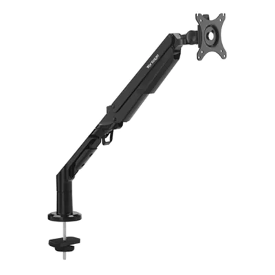 Einzel-Monitortragarm mit Gasdruckfeder zur komfortablen, ergonomischen Einstellung des Monitors. Einstellbare Hemmungen der Drehgelenke. Maximale Höhe über dem Tisch Mitte VESA 510 mm. Gute Kabelführung durch Kabelhalter.