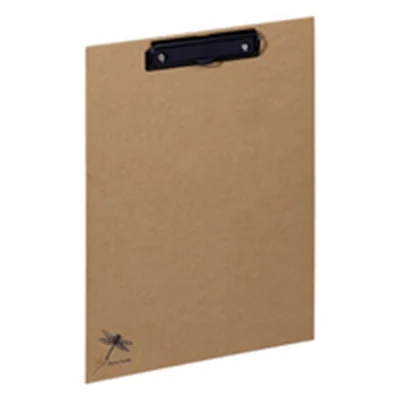 Stabiler Rücken für bequemes Schreiben ohne Unterlage. Mit Klemmmechanik für lose Dokumente und hochwertiger schwarzer Prägung einer Libelle.