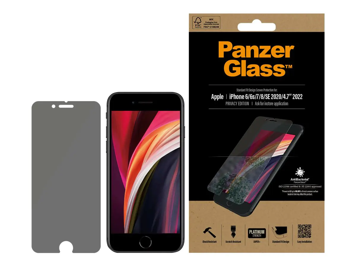 PanzerGlass Privacy - Bildschirmschutz für Handy - Glas - mit Sichtschutzfilter - kristallklar - für Apple iPhone 6, 6s, 7, 8, SE (2. Generation) | ||||