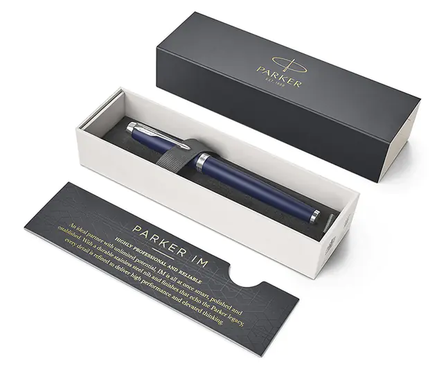 Parker IM. Bauart: Stick Pen, Produktfarbe: Blau, Schreibfarben: Schwarz. Verpackungsart: Box, Menge pro Packung: 1 Stück(e)