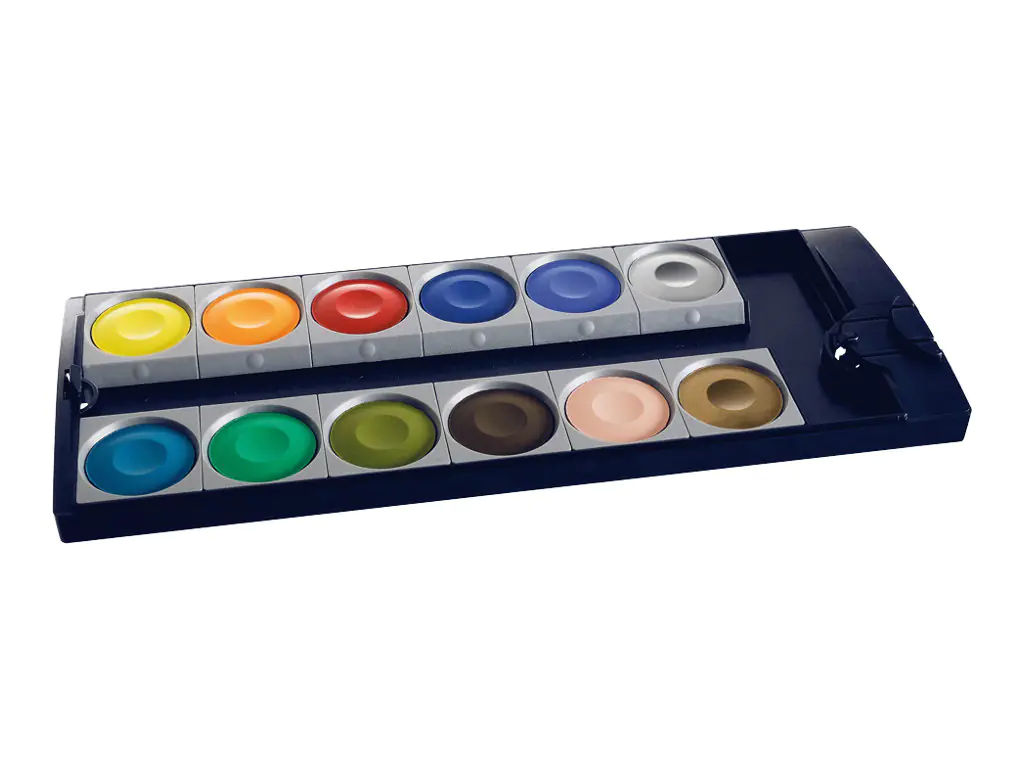 Farbe | Schwarz, Gelb, Orange, Violett, Olivgrün, Karminrot, Silber, Kobaltblau, Ultramarine, Gold, Burnt Sienna, Preußisch Blau, Blaugrün, Gelbgrün, Flesh, Ockergelb, Türkisblau, Cyanblau, French Green, Indian Yellow, Umber, Chinese White, Magenta Red, Vermilion Dark, Lemon | |||