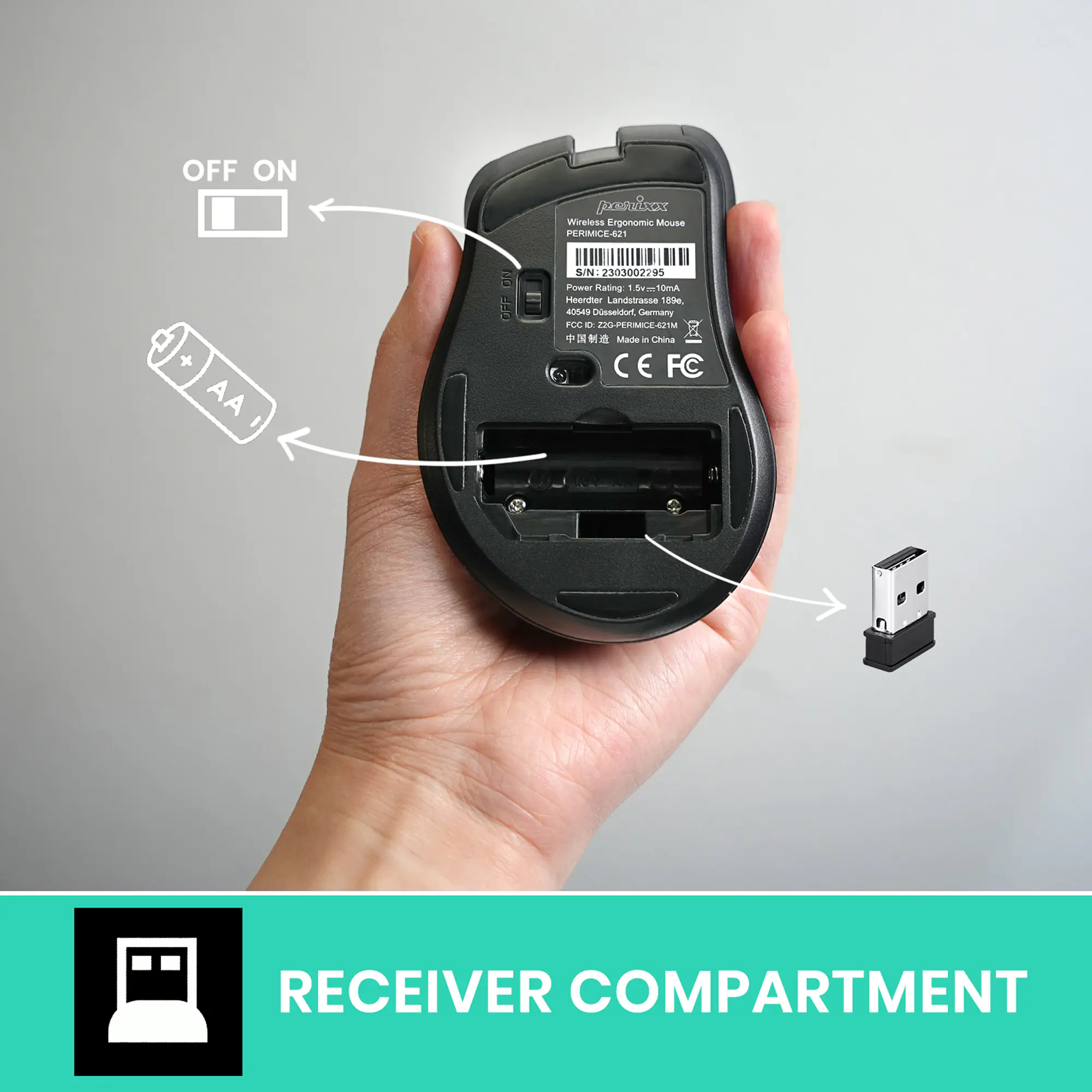 Perixx PERIMICE-621 B Kabellose Maus mit geräuschlosen Klicks und Ergo - Maus - Bluetooth 5