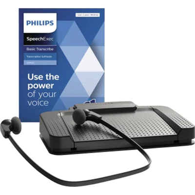 Das Transkriptionsset ist eine speziell für die einfache und intuitive Transkription ausgelegte digitale Lösung zur Dokumentenerstellung. Mit dem ergonomischen Zubehör und der innovativen Workflow-Software SpeechExec erledigen Sie Ihre Aufgaben problemlos. rgonomischer Fußschalter zur freihändigen Bedienung aller Transkriptions- und Wiedergabefunktionen. Das schlanke, ergonomische Design gewährleistet die Bedienung mit minimaler körperlicher Anstrengung. Magnetische Kontakte, robuste Pedale und ein wasserdichtes Design gewährleisten eine hohe Belastbarkeit und eine lange Lebensdauer. Mit nur einer leichten Bewegung der Fußspitze können Audiodateien abgespielt, gestoppt, vor- und zurückgespielt werden. Beide Hände bleiben somit frei zum Tippen und ermöglichen einen ungestörten Transkriptionsprozess. eichte, unter dem Kinn zu tragende Kopfhörer mit weichen Ohrpolstern für höchsten Tragekomfort gewährleisten erstklassige Klangqualität. Mit der SSpeechExec Basic Software wird der Workflow von Diktatdateien und fertigen Dokumenten zwischen Autor und Schreibkraft organisiert und lässt sich der Status Ihrer Arbeit verfolgen. Mit der integrierten Prioritäteneinstellungsfunktion können dringende Aufnahmen mit einer Priorität versehen werden. Damit ist gewährleistet, dass wichtige Diktatdateien auf einen Blick erkannt und bevorzugt verarbeitet und geliefert werden. Das Transkriptions-Set kann nahtlos und einfach in bestehende digitale Philips Diktierlösungen integriert werden.