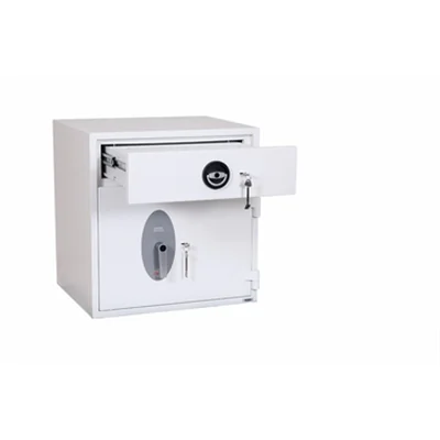 Die Serie Phoenix Diamond Deposit-Serie ist für die sichere Aufbewahrung großer Bargeldmengen konzipiert, ohne die übliche Verringerung des Sicherheitsschutzes, der normalerweise mit Einzahlungssafes verbunden ist. Ideal für Einzelhandelsgeschäfte, Garagenvorplätze, Banken und Finanzinstitute. SICHERHEITSSCHUTZ - Getestet nach dem renommierten europäischen Sicherheitsstandard EN1143-2:2014, Klasse D1 (ECB.S-zertifiziert) mit einer Deckung von 10.000 € für Bargeld oder 100.000 € für Wertsachen. ZULASSUNGEN - Von der britischen Polizei zugelassen (Secured by Design-Schema) und von der Association of Insurance Surveyors (AiS). SICHERE TÜRVERRIEGELUNG - Ausgestattet mit einem Hochsicherheitsschloss der VdS-Klasse I. SCHUBLADENAUFBEWAHRUNG - Hochsichere ausziehbare Schubladenaufbewahrung mit speziellem Schallwand-Fallsystem für maximale Sicherheit. Das Schubladendepot ist durch Mehrfachsperrbolzen gesichert und mit einem Hochsicherheitsschloss der VdS-Klasse I verschlossen. KONSTRUKTION - Doppelwandige Verbundkonstruktion, Anti-Bohrplatten und Schließfachschutz für die Tür bieten einen Tresor von großer Stärke. BEFESTIGUNG - Fertig vorbereitet für Bodenbefestigung. FARBE - Beendet in einer hochwertigen, kratzfesten Farbe. Geeignet für die Aufbewahrung von kontrollierten Arzneimitteln, deren Wirkstoffe 500 Gramm überschreiten.