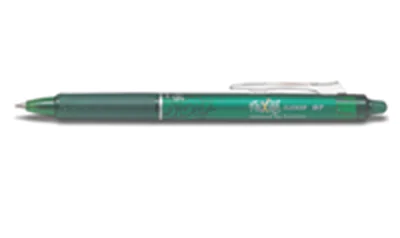 Innovativer, radierbarer Tintenroller mit Druckmechanik über den Clip. Ausgestattet mit der patentierten, thermosensitiven FriXion-Tinte. Mittels der Kunststoffspitze am Gehäuseende und der erzeugten Reibungswärme (ab ca. 60° C) kann das Geschriebene weggerieben werden. Kälte bewirkt den Umkehreffekt. Eine kurze Zeit im Gefrierfach (ab ca. -10° C) lässt die Schrift wieder erscheinen. Konische Edelstahlspitze für besonders hohe Druckresistenz und Langlebigkeit.