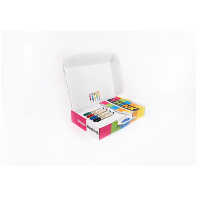- 1 x Satz THINK-Workshopkarten (35 gedruckte Karten), 4 x EcoLine edding Marker (rot, blau, grün, schwarz), 4 x Haftnotizenpackungen