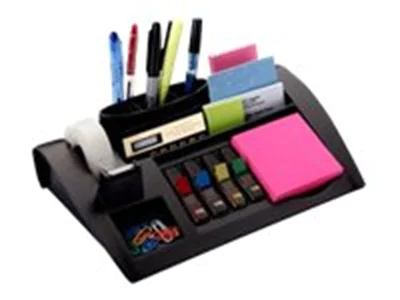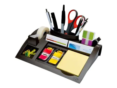 Hier ist alles an seinem Platz! Der Post-it® Tischorganizer vermeidet Unordnung auf dem Schreibtisch, Empfangstisch oder der Ladentheke. Die beschwerte rutschsichere Unterseite sorgt dafür, dass der Organizer stets sicher an seinem Platz bleibt.