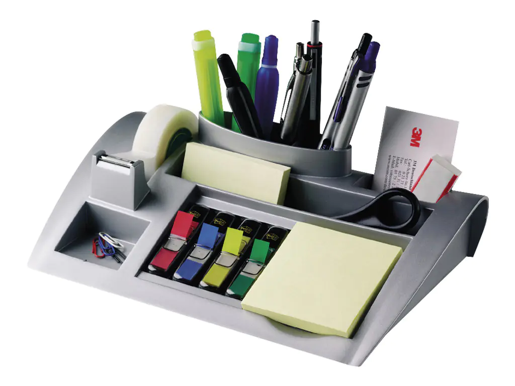 Post-it Tisch-Organizer C50 - Für mehr Ordnung! Der Organizer hält die am häufigsten genutzten Büroutensilien ordentlich zusammen und jederzeit griffbereit. Vermeidet Unordnung auf dem Schreibtisch, Empfangstischen oder Ladentheken. Die beschwerte rutschsichere Unterseite sorgt dafür, dass der Organizer sicher an seinem Platz bleibt.