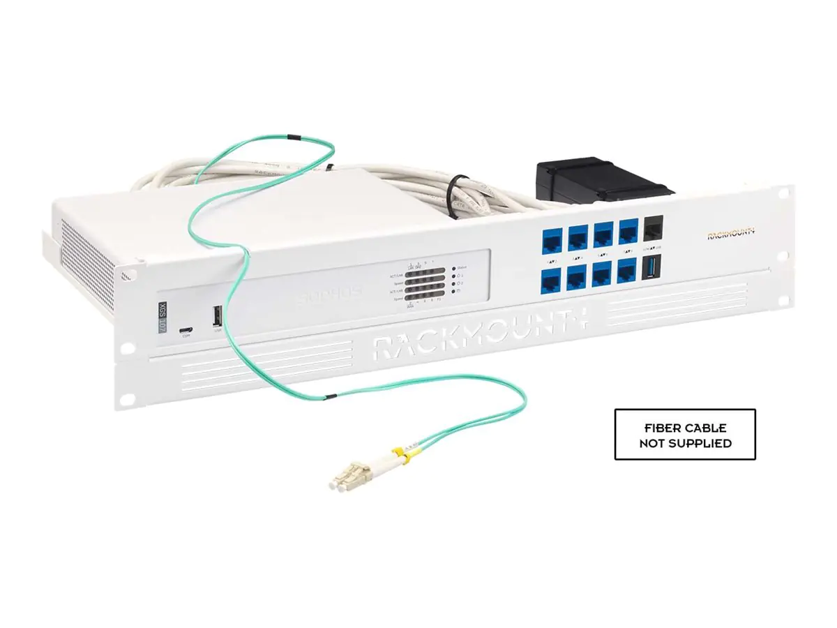Mit dem RM-SR-T11 können Sie Ihre Sophos Desktop Gerät auf ein 19-Inch-Gestell montieren. Das Gestell ist speziell auf die aufgelisteten Modelle zugeschnitten, um perfekte Passform zu garantieren. Die Verbindungen befinden sich an der Vorderseite, um den Zugang zu erleichtern, ebenso wie der Konsolenanschluss. Die Stromversorgung ist fixiert, um ungewollte Stromausfälle zu vermeiden.