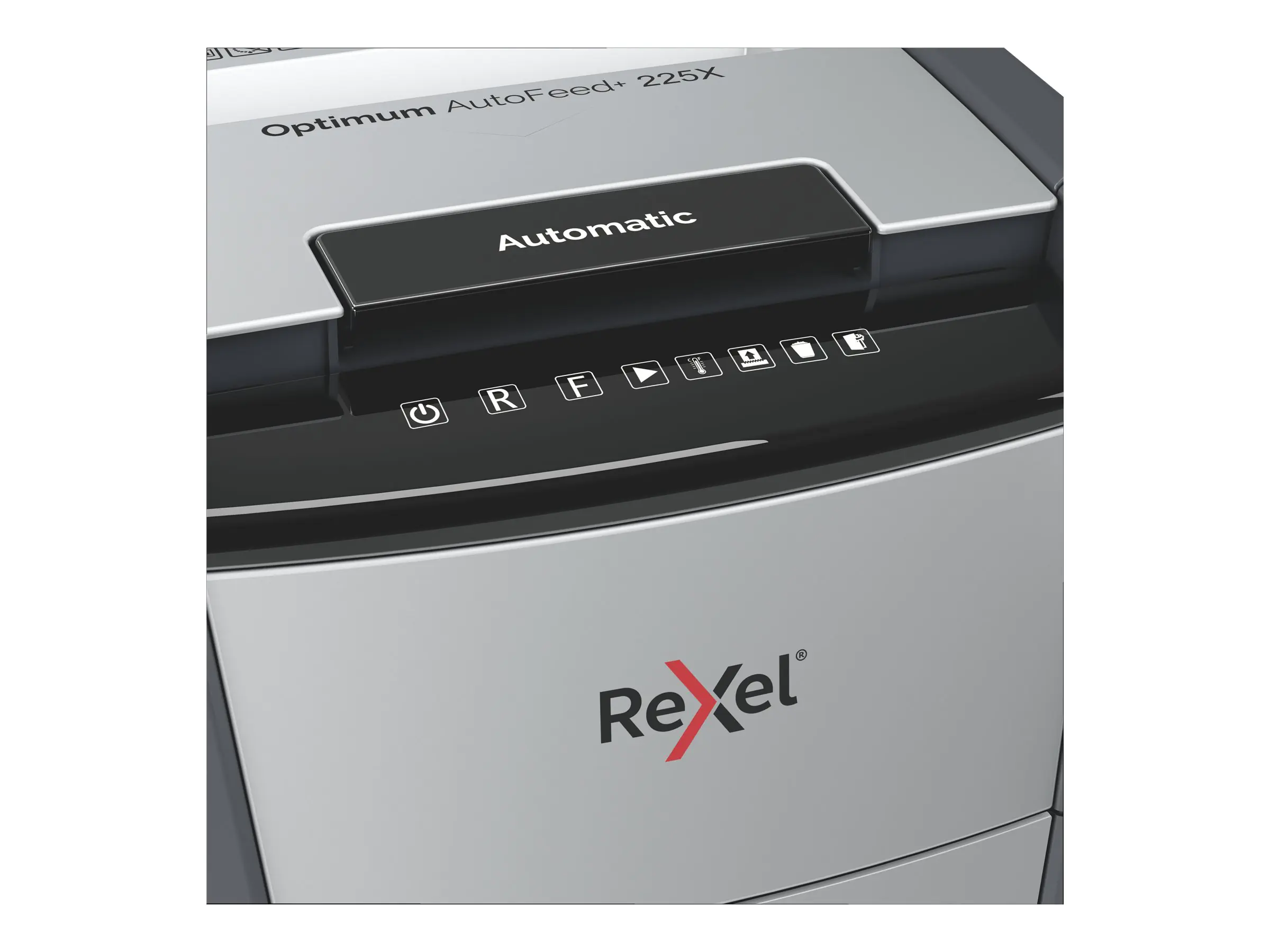 Der Optimum AutoFeed+ 225X Partikelschnitt-Schredder zerkleinert automatisch bis zu 225 Blatt A4 Papier (80 g / m ) in einem Durchgang in Sicherheitsstufe P4 kleine Partikel (4 x 25 mm). Dieser hochentwickelte AutoFeed Aktenvernichter ist aufgrund des großzügigen 60 Liter herausziehbaren Abfallbehälters ideal für den Einsatz im Büro geeignet. Sie müssen weder Papier einzeln manuell einführen noch Heft- oder Büroklammern entfernen. Er erledigt die gesamte Arbeit für Sie.