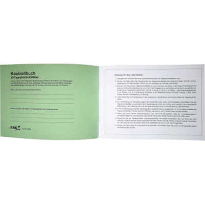Nach der Fahrpersonalverordnung muss jeder Fahrer eines gewerblich genutzten Fahrzeuges mit mehr als 2,8 Tonnen bis maximal 3,5 Tonnen Höchstmasse inklusive Anhänger Aufzeichnungen über seine Lenk-, Arbeits- und Ruhezeiten führen. Mit dem Kontrollbuch werden diese gesetzlichen Anforderungen erfüllt.