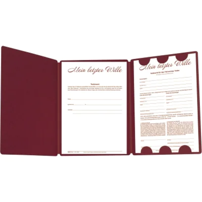 RNK Verlag Vorsorgemappe Mein letzter Wille 2 Personen Umfangreiche Erläuterungen, je 2 x Schreibbogen für handschriftliches Testament, Vollmacht für Todesfall, Anweisungen für Todesfall Feinstkarton weinrot