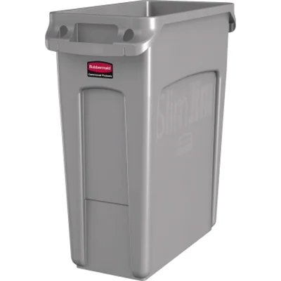 Der Slim Jim®-Behälter mit Luftkanälen von Rubbermaid Commercial wurde entwickelt, um das kommerzielle Abfallmanagement zu erleichtern und die Belastung für Mitarbeiter zu verringern. Hergestellt aus hochwertigen Materialien, verfügen diese Behälter über Luftkanäle, die das Austauschen von Müllsäcken bis zu 80 % leichter gestalten als herkömmliche Behälter mit glatter Wand. Beutelklemmen fixieren die Abfallsäcke am Behälterrand und sorgen für einen schnelleren, knotenfreien Austausch der Säcke.