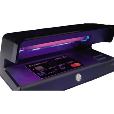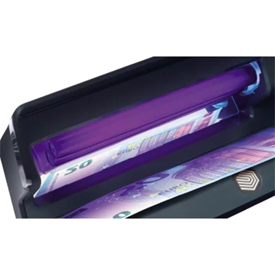 Die leistungsstarke UV-Lampe kontrolliert die UV-Merkmale von Geldscheinen, Ausweisen, Kreditkarten und zahllosen sonstigen offiziellen Dokumenten.