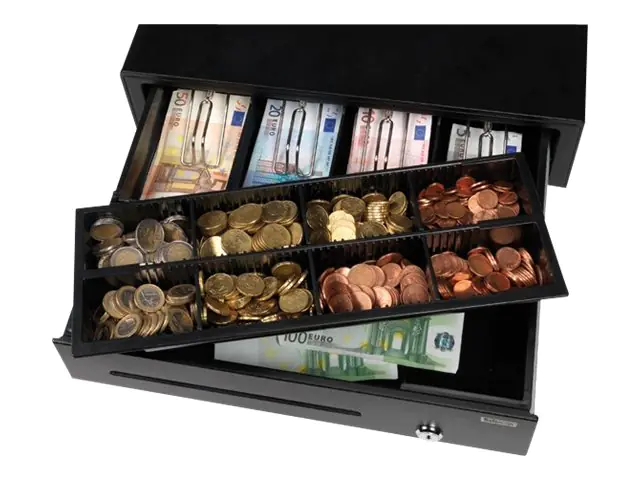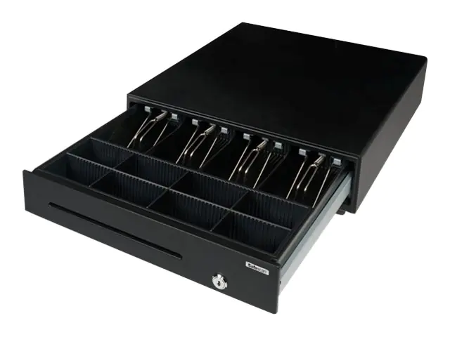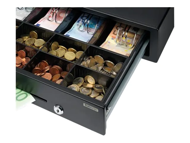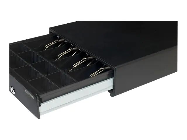 Die Kassenlade SD-4141 wird aus soliden Materialien gefertigt. Das robuste Gehäuse und das bruchsichere PVC-Fach mit stabilen Metall-Geldklemmen wurden für mittelstark frequentierte Einsatzorte, wie z.B. Schul- und Bürocafeterien sowie Klubhaus-Kantinen, entwickelt. Die SD-4141 verfügt über belastbare Kugellagerrollen und einen robusten Schließmechanismus, der garantiert mindestens 1 Million störungsfreie Öffnungs-/Schließvorgänge ermöglicht. Die anpassbaren Geldschein-Trennfächer erlauben Ihnen eine Aufteilung der SD-4141 für genau die für Sie relevanten Banknoten und die ebenfalls anpassbaren Münzbecher halten Wechselgeld und Wertmarken ordentlich sortiert. Ein großer Separierungsschlitz bietet viel Platz zur Aufbewahrung von Gutscheinen, Kreditkartenbelegen und anderen unbaren Belegen. Die SD-4141 verfügt über ein 3-Positionen, 4-Funktionen Schloss sowie über einen RJ12-Anschluss (zur Integration in Ihr POS-System wie Registrierkasse oder POS-Drucker) für ein Maximum an Benutzerfreundlichkeit ohne Kompromisse hinsichtlich der Sicherheit. Sie können die Kassenlade automatisch über Ihre Registrierkasse, über Ihren Drucker oder aber manuell öffnen. Schließen Sie sie mit der "closed" Position ab (wenn Sie den Kassenbereich kurz verlassen müssen) oder wählen Sie die "open" Position (bei leerer Kasse, zur Abschreckung von Dieben). Die Kassenlade SD-4141 kann zudem durch sanften Druck jederzeit manuell geöffnet werden. 3 Jahre Garantie bei Registrierung.