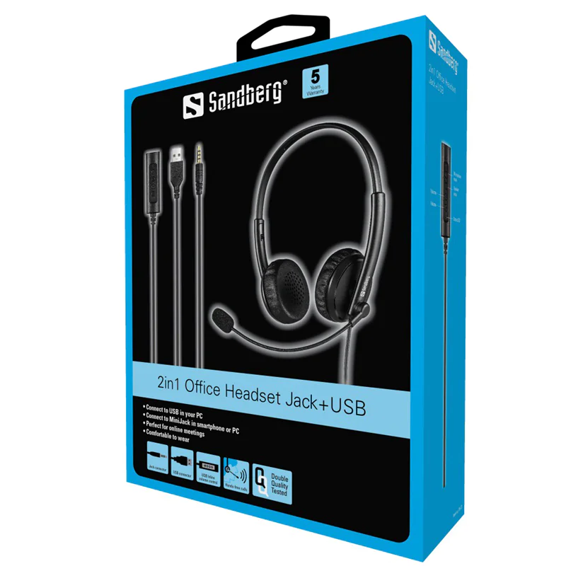 Das Sandberg 2in1 Office Headset Jack+USB ist ein cleveres Allround-Anschluss-Headset. Es verfügt sowohl über MiniJack als auch über USB-Anschluss. Das bedeutet, Sie können es entweder an den USB-Anschluss Ihres Computers oder an die 3,5-mm-Klinenstecker-Buchse für den Audio-Anschluss Ihres Smartphones oder Tablets anschließen. Die klare und deutliche Klangwiedergabe dieses Headsets ist perfekt für Online-Meetings. Sowohl der Mikrofonarm als auch der Kopfbügel für einen optimalen Sitz einstellbar.