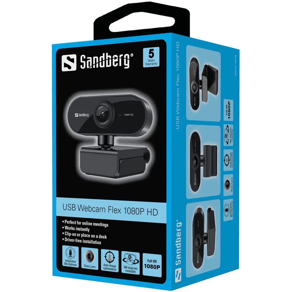 Die Sandberg USB Webcam Flex 1080p HD liefert Ihnen dank der Full-HD-Auflösung von 1080p scharfe, klare Bilder. Es funktioniert sofort ohne Treiberinstallation. Die Kamera ist zudem mit einem Mikrofon ausgestattet.