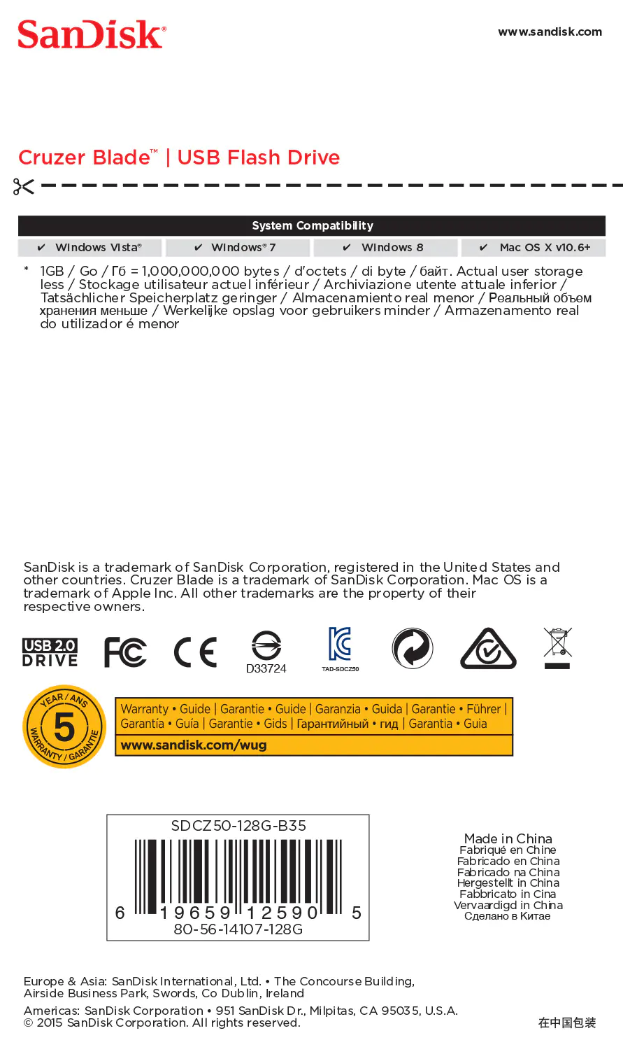 Produktbeschreibung | SanDisk Cruzer Blade - USB-Flash-Laufwerk - 128 GB | |||