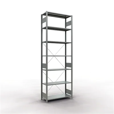 Aussteifung durch Kreuzstrebe. Einfaches Ausrichten des Regals durch Spannschlösser an den Kreuzstreben.Ideal zum Aufbau von Regalzeilen vor Wänden und als Doppelregal Rücken an Rücken. Fachböden im Raster in der Höhe verstellbar. Geeignet zum Bau mehrstöckiger Regalanlagen. Schneller Aufbau durch ein faches Stecken der Fachböden.