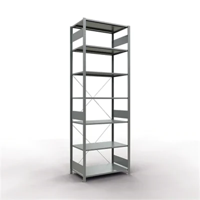 Aussteifung durch Kreuzstrebe. Einfaches Ausrichten des Regals durch Spannschlösser an den Kreuzstreben.Ideal zum Aufbau von Regalzeilen vor Wänden und als Doppelregal Rücken an Rücken. Fachböden im Raster in der Höhe verstellbar. Geeignet zum Bau mehrstöckiger Regalanlagen. Schneller Aufbau durch ein faches Stecken der Fachböden.