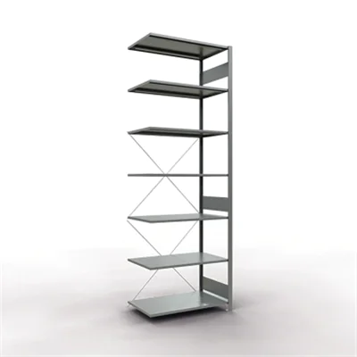 Aussteifung durch Kreuzstrebe. Einfaches Ausrichten des Regals durch Spannschlösser an den Kreuzstreben.Ideal zum Aufbau von Regalzeilen vor Wänden und als Doppelregal Rücken an Rücken. Fachböden im Raster in der Höhe verstellbar. Geeignet zum Bau mehrstöckiger Regalanlagen. Schneller Aufbau durch einfaches Stecken der Fachböden.