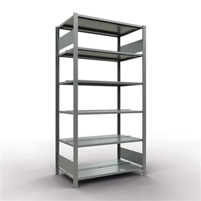 Schnelle und einfache Montage, flexibler Umbau möglich. Aussteifungsvariante für die beidseitige Nutzung. Ideal zum Aufbau von freistehenden Regalzeilen. Attraktive Optik durch ungelochte T-Profil-Fronten und Fachböden.