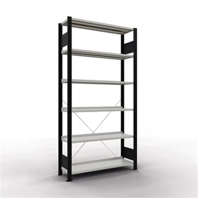 Fachbodenregal, einseitig nutzbar. Aussteifung durch Kreuzstrebe. Einfaches Ausrichten des Regals durch Spannschlösser an den Kreuzstreben. Ideal zum Aufbau von Regalzeilen vor Wänden und als Doppelregal Rücken an Rücken. Fachböden im Raster in der Höhe verstellbar. Geeignet zum Bau mehrstöckiger Regalanlagen. Schneller Aufbau durch ein faches Stecken der Fachböden.