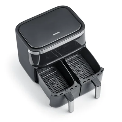 Die SEVERIN Doppel-Heißluftfritteuse FR 2453 überzeugt mit zwei individuell steuerbaren Fritterkörben. Egal ob nur ein Frittierkorb, einen Frittierkorb bei 120 °C und einen bei 200 °C oder synchron geschaltet - mit 8 Automatikprogrammen oder selbst definierten Einstellungen lässt sich ganz leicht und schnell ein Hauptgericht auf den Tisch bringen. In jeden Frittierkorb passen ca. 3,25 L, was einer Menge von ungefähr 650 g Pommes entspricht. Mit der Dörr-Funktion können auch Lebensmittel zwischen 40 und 80 °C getrocknet werden. Der Fantasie in der Küche sind keine Grenzen gesetzt.