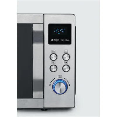 Mikrowelle mit Grill- und Heißluftfunktion 3-in-1. Hochwertiges Edelstahl-Design mit ansprechend verspiegelter Tür. "EasySelect“ Konzept ermöglicht eine einfache und intuitive Anwendung mit übersichtlicher Bediengestaltung. Modernes LED-Touch-Display mit Quick-Select-Funktionen. Easy-Select Drehregler mit umlaufender 360°-LED-Beleuchtung zur einfachen Auswahl der gewünschten Leistungsstufen/Programme. Vielseitiges Backen und Zubereiten dank Heißluftfunktion bis zu 200 °C inklusive Vorheizfunktion. "Be-Silent“ Funktion: Signaltöne können auf Wunsch deaktiviert/aktiviert werden. Favourite-Dish Funktion: Leistung/Programm und Garzeit kann für drei Gerichte gespeichert und abgerufen werden. Verschiedene Leistungsstufen inkl. Auftauprogramm nach Gewicht und Zeit. 8 verschiedene Automatik-Kochprogramme. Mikrowelle, Grill und Heißluft getrennt und kombiniert schaltbar. Full Power Quick-Start.