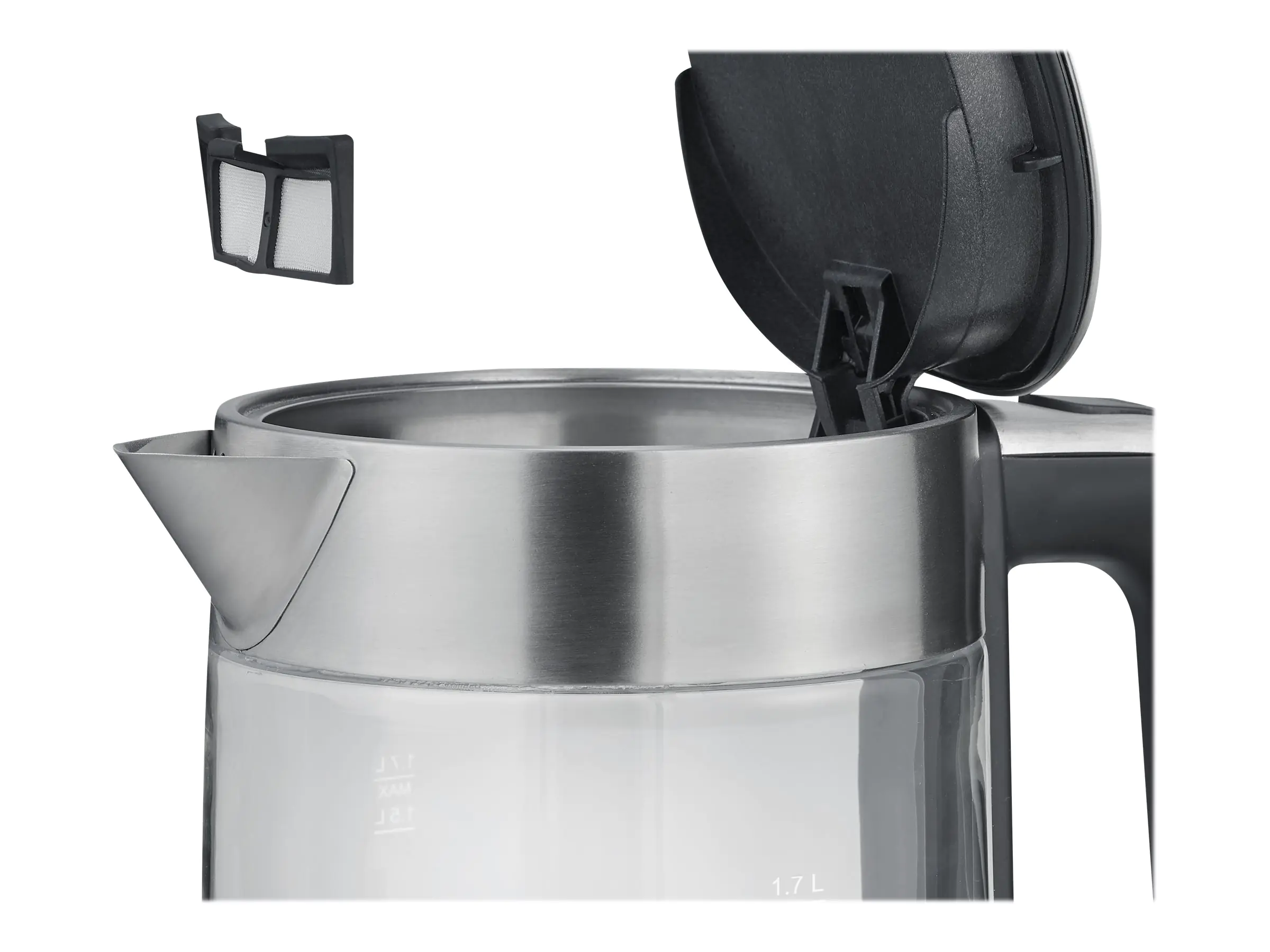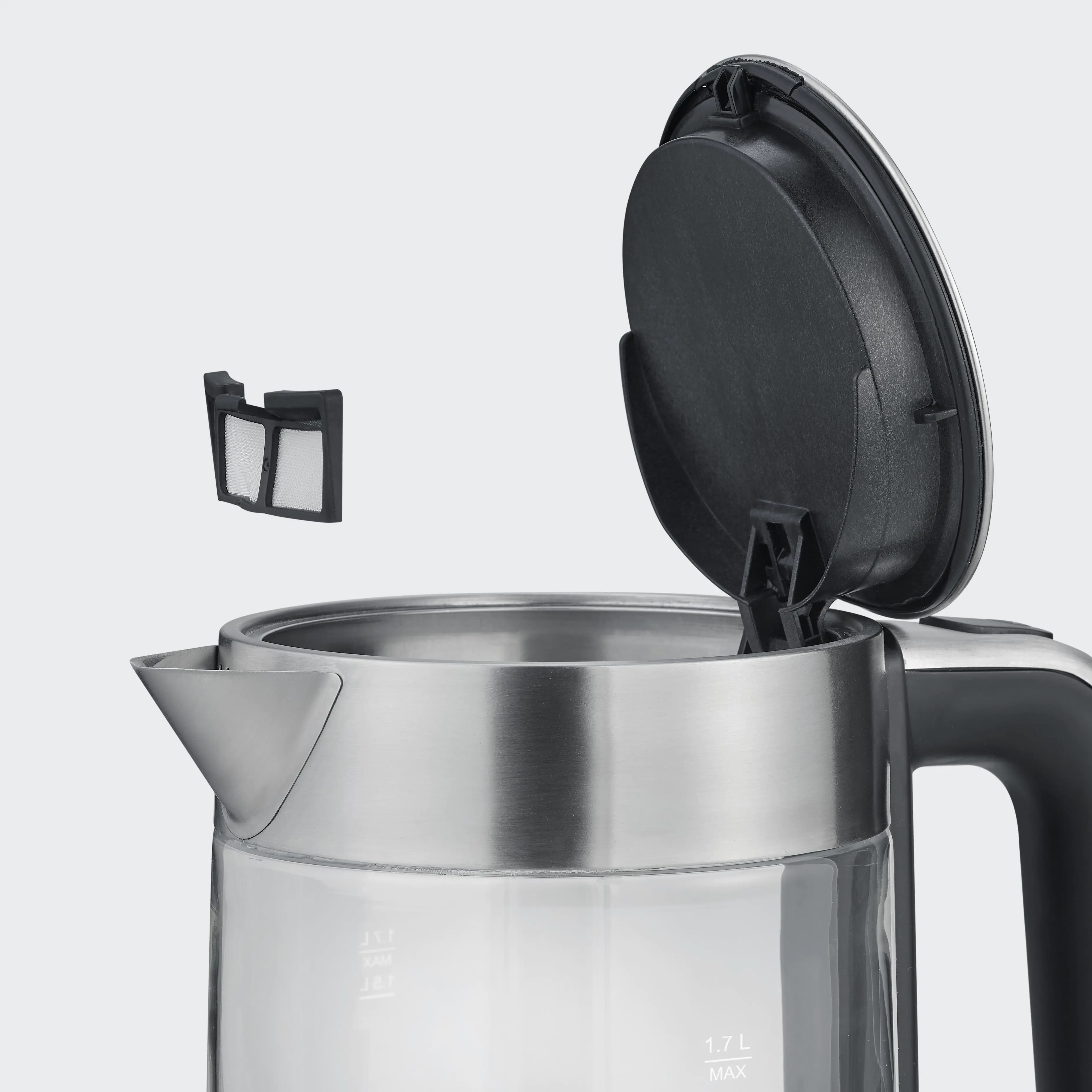 - Hochwertiges Edelstahl-Glas-Design mit 1,7 l-XXL-Füllvolumen
