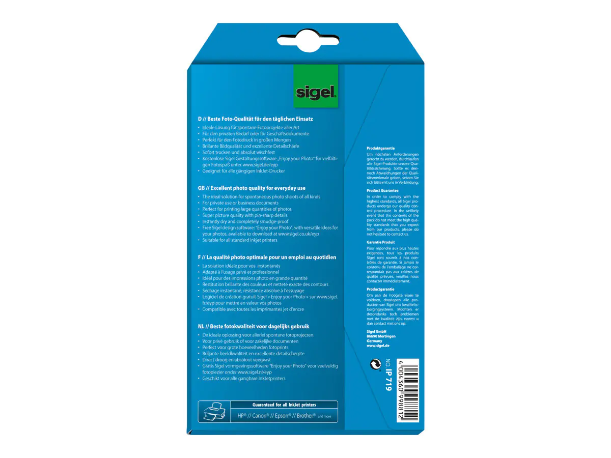 Druckmedien und Etiketten: Mit seinen hochwertigen Spezialpapieren und Etiketten bietet Sigel die passende Lösung für professionelle Druckprojekte. Ob für Visitenkarten, Broschüren oder personalisierte Etiketten – die Produkte sorgen für gestochen scharfe Druckergebnisse und eine beeindruckende Haptik.