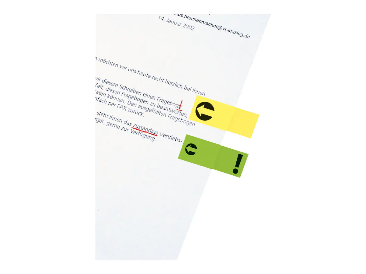 - Typbezeichnung des Motivs: Unterschrift, Ausrufezeichen, Fragezeichen, Pfeil